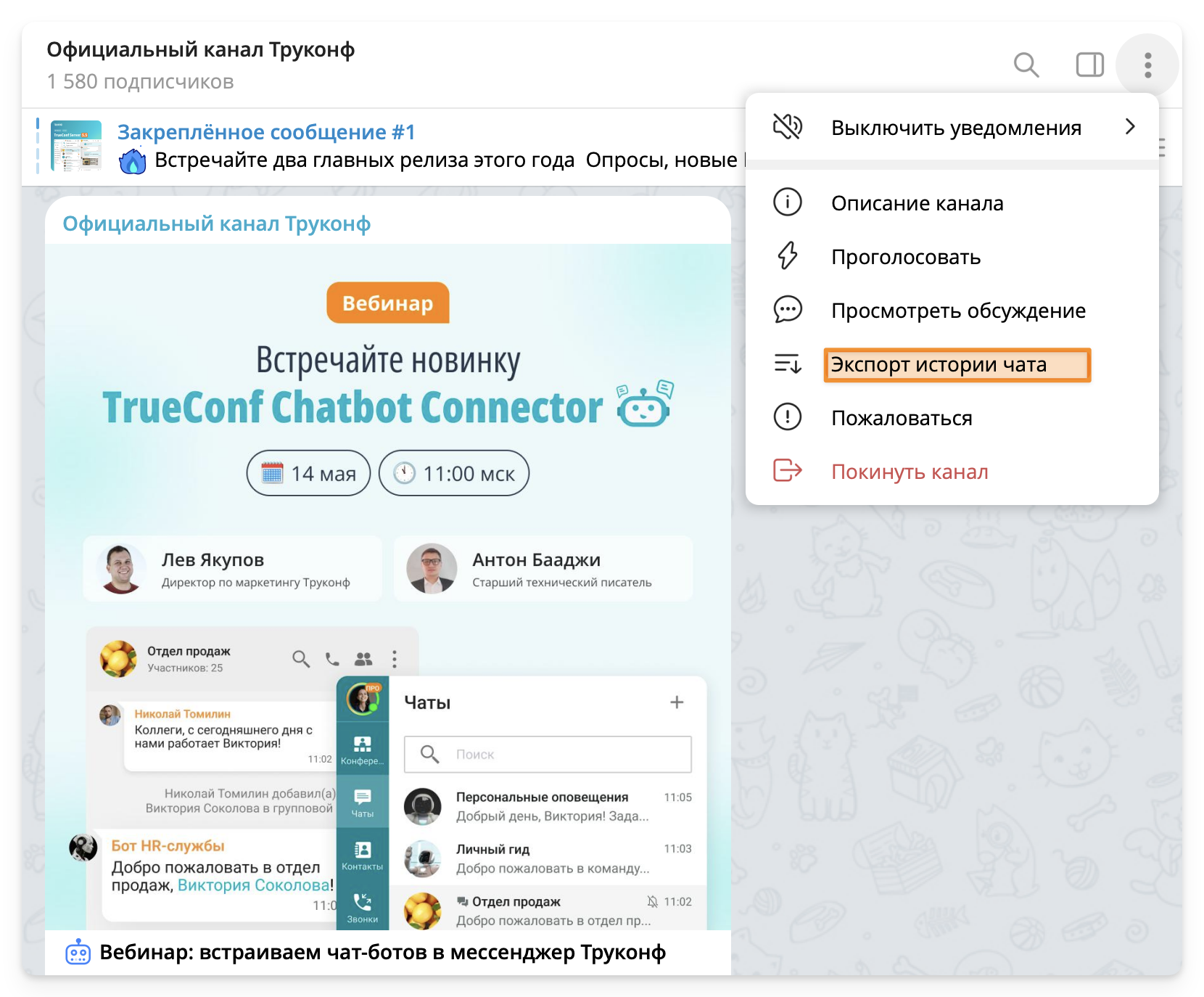 Итого, для переноса чатов из Telegram в Труконф нужно: