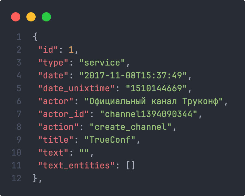 Другие типы сообщений приводить не буду, чтобы не перегружать статью. Вы можете сделать это сами. Главное, что стало понятно – Telegram сделал все, чтобы их бэкап можно было использовать для дальнейшей обработки в других системах.