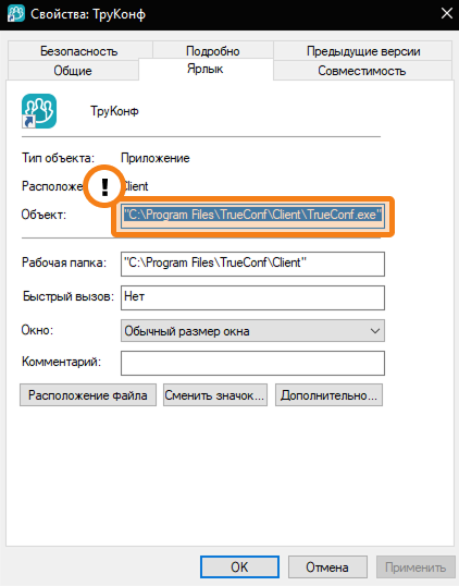 - Нажмите правой кнопкой мыши на ярлык Труконф.