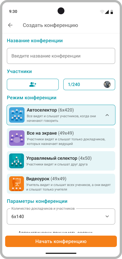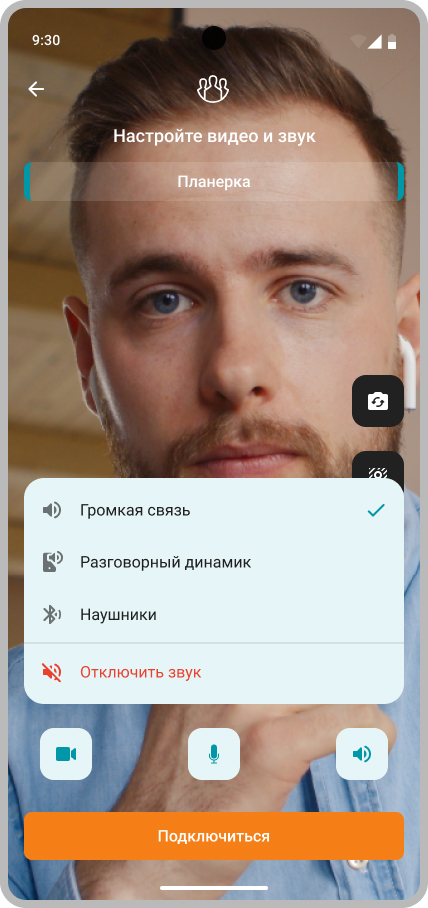При подключении к конференции пользователя теперь встречает специальный экран предварительной настройки звука и видео.