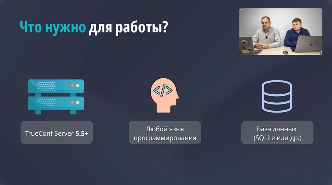 Проверенный набор инструментов, на основе которого разработано собственное программное обеспечение для видеоконференцсвязи — TrueConf Kiosk, TrueConf Room и TrueBox.